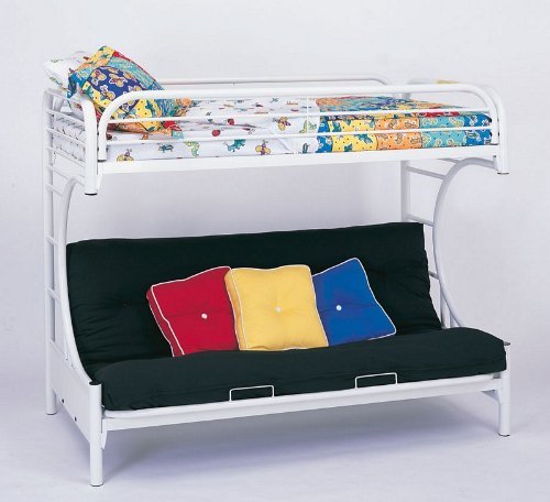 - Twin Full Futon Metal Bunk Bed "C" Style White Finish