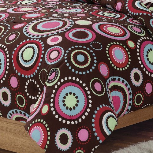 Features Girls Teen Hippie Chic Hot Pink and Brown Comforter Set with Luscious 250tc Sheets: