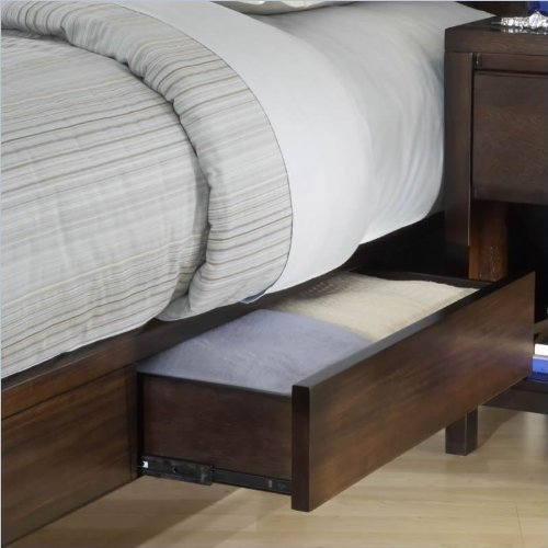 Features Modus Furniture 2O26D5 Urban Loft Queen Size Storage Bed with Synthetic Leather Headboard Panel, Chocolate Brown: