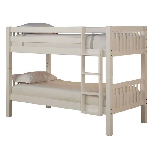 Description : Finished in pure white paint over solid wood. Assembles as a twin over twin bunk bed. Add the 270-077 trundle for extra sleep space. Tested and certified by an independent testing laboratory to meet safety specifications of ASTM F1427-07 and CPSC U.S. 16 CFR Parts 1213 and 1513. Some assembly required.