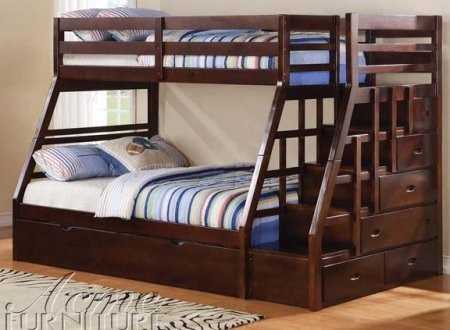 Description : With space saving features this Jason Espresso Twin over Full Bunk Bed with Storage Ladder and Trundle with warm design and functional character will be a wonderful addition to your child39s bedroom The built in guard rail and ladder add safety and c...