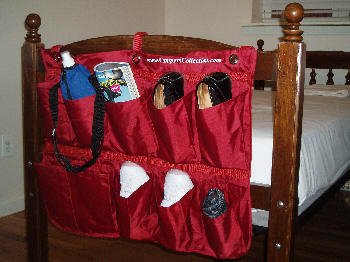 Description : This end of bed shoe organizer has 10 front pockets that are very useful for storing shoes and toiletries. It has 1 zippered pocket on the opposite side for your small items and 3 Velcro straps to hang at the foot of your bed. Keeps your bunk items close by and organized.