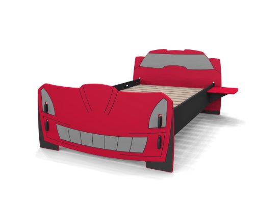 Description : Kid's rooms should be fun. Boys will love this cool Race Car Bed design in sporty red and black colors. A convenient side shelf is included and can be quickly attached to either side of the bed, but the most compelling feature is that this entire bed can be assembled tool-free in less than 3 minutes.