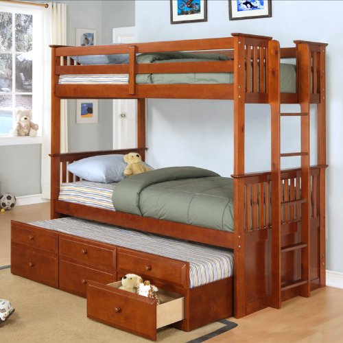 Description : The Jake Twin Size Upper Bunk Bed features a classic traditional design. With its burnished pine finish, the bed includes guardrails and a ladder. Complete the bunk bed set with the Jake lower twin or full bed.