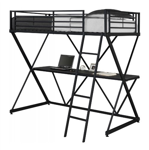 Description : This sturdy twin loft bed is the ultimate space-saving piece for any child's or teenager's room. The cool modern design will be sure to maximize space in any room. Accommodating any twin-size mattress, the loft bed has an easy-to-climb front ladder and full-length guardrails for security.