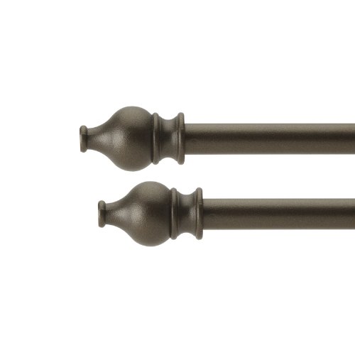 - Diverge double drapery rod kit includes two 5/8-inch (1-1/2 cm) diameter telescoping rods, four decorative finials, decorative double-rod mounting brackets, and installation hardware